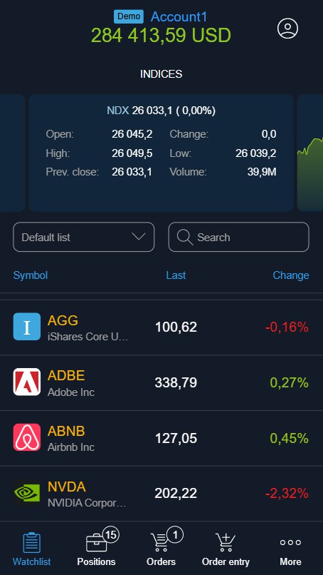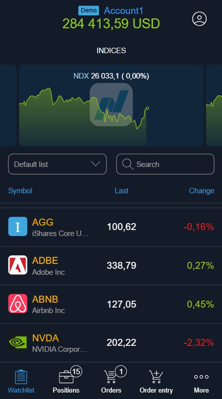 * Chart - by tapping, the Chart with the selected symbol will be opened;