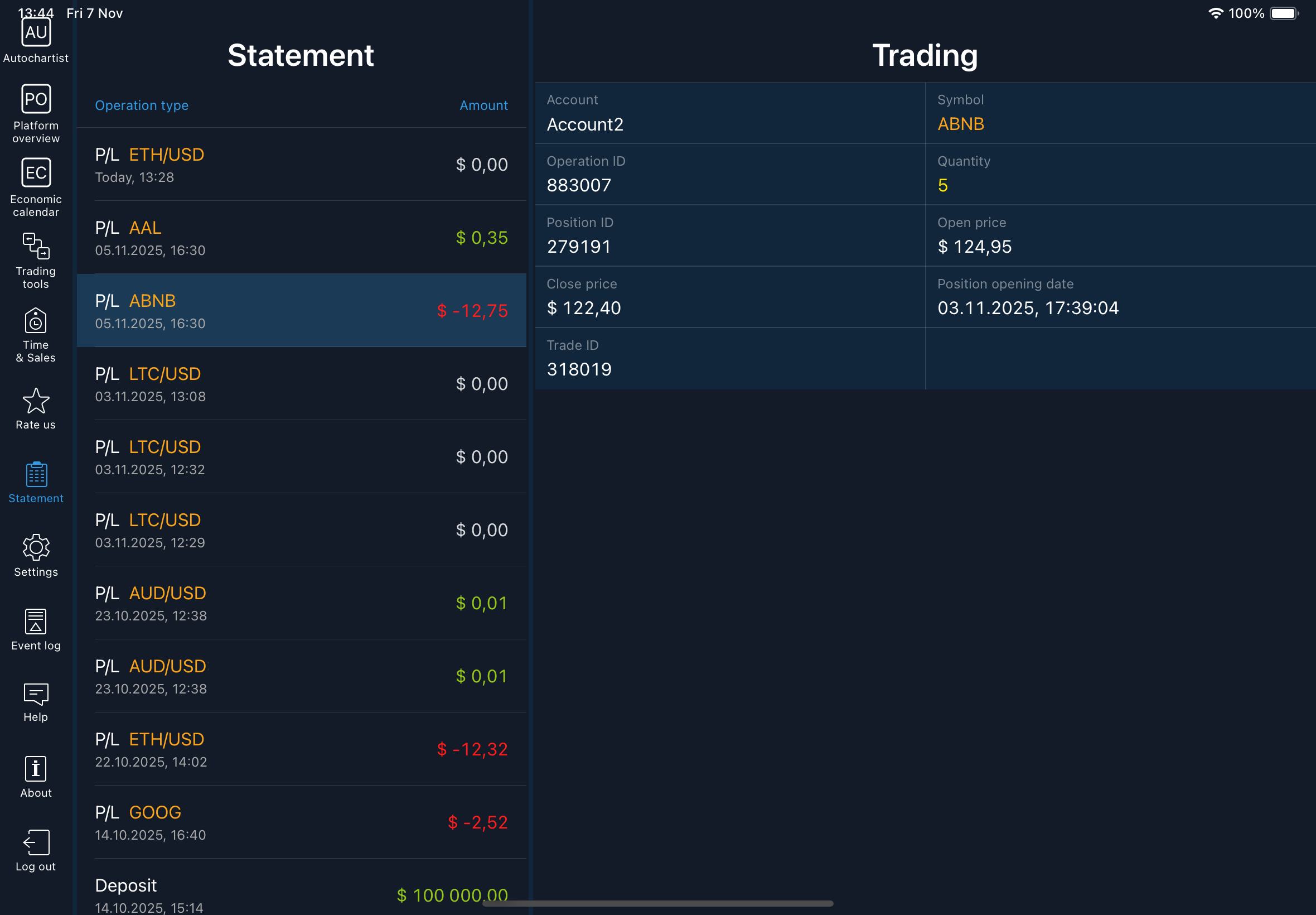 * Position opening date - date of the position opening. Available only if account operation is related to the position;