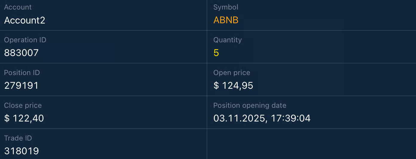 * Quantity - quantity of the position. Available only if account operation is related to the position;
