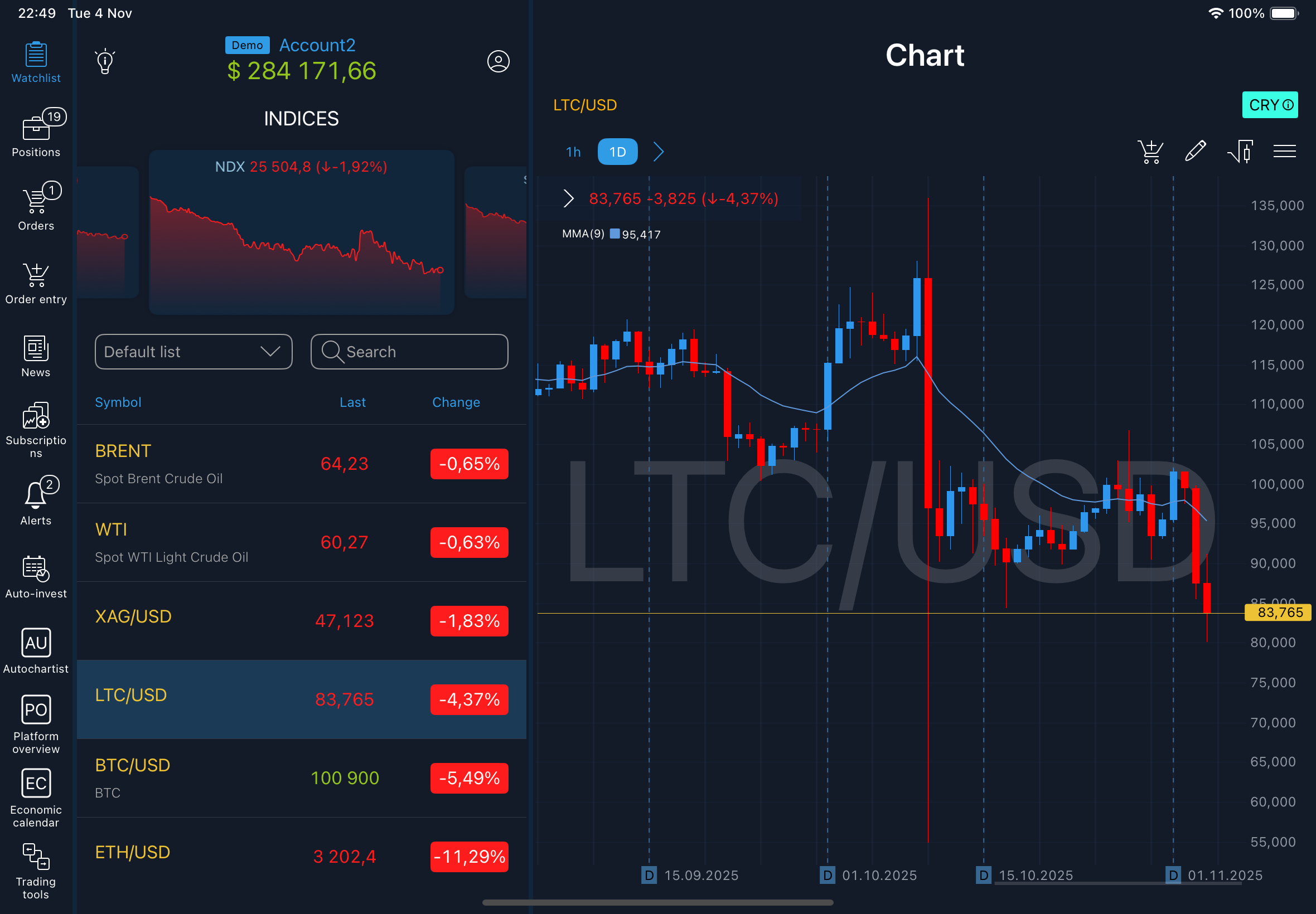 Modified moving average (MMA) is an algebraic tool that makes averages more susceptible to price shifts. The Modified moving average is a special case of the Exponential moving average, for which the smoothing constant is equal to the reciprocal of the smoothing interval. This average is a slope that helps it catch up with the rising or falling value of the currency's trading price.