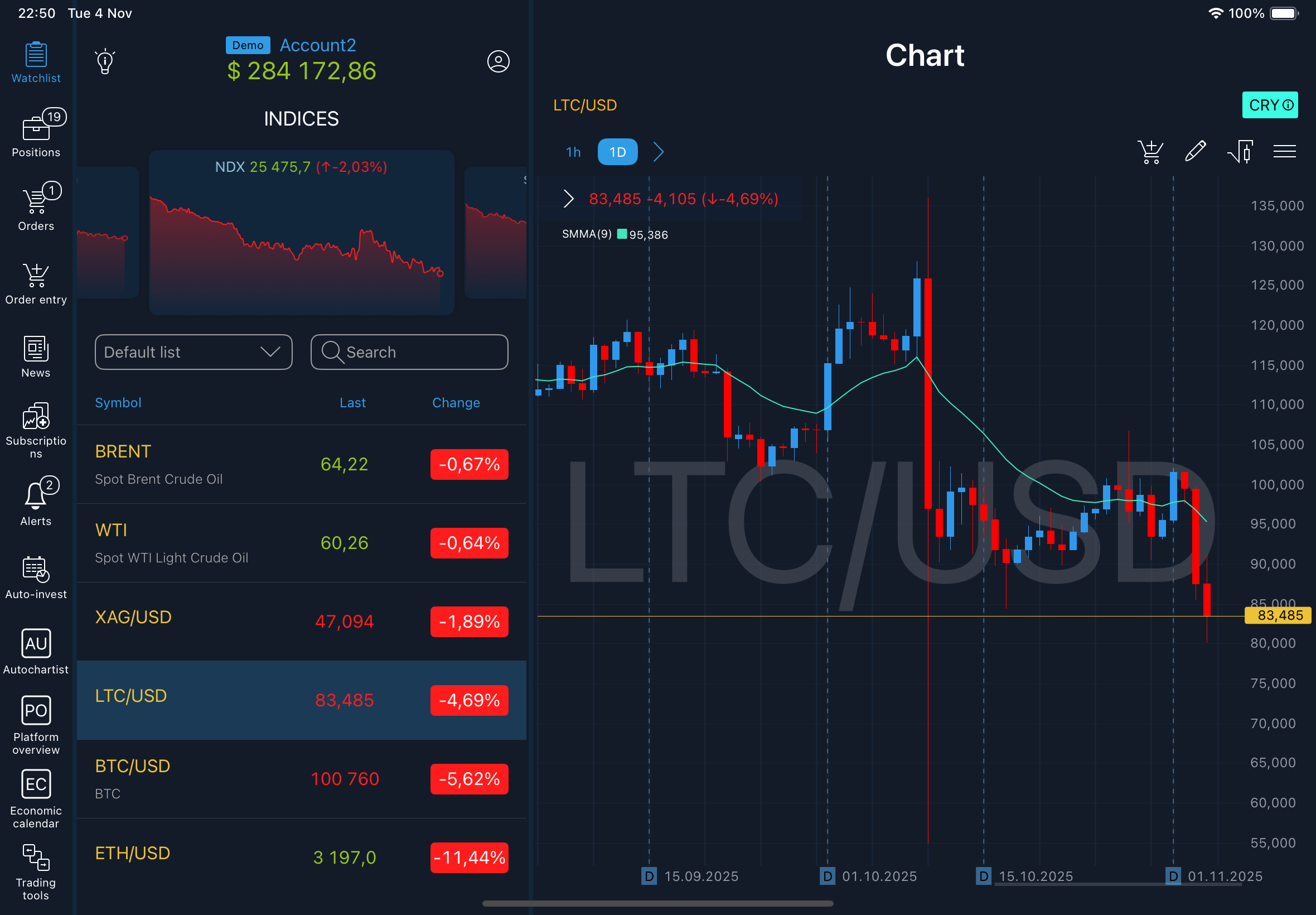 The Smoothed moving average is a kind of mix of a simple moving average and an exponential moving average, but with a longer period (about half the EMA period: for example, a 20-period SMMA is almost equal to a 40-period EMA).